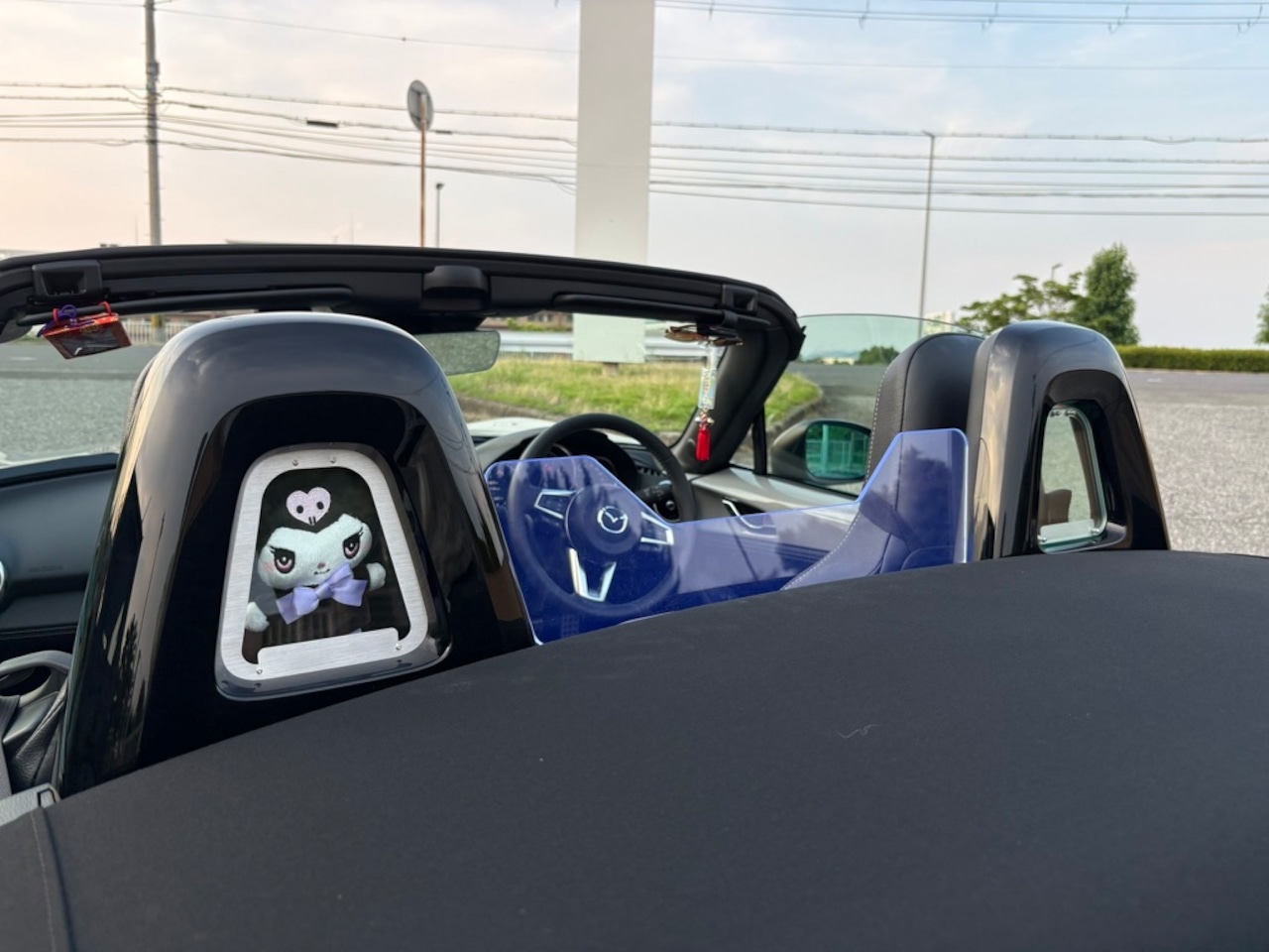 シートバックベゼルのステンレスプレートに装着されたアクリル板が後ろからの印象を変化させます。